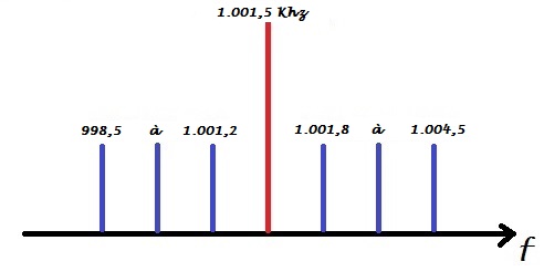 Avec l'oscillateur 1 à 1.500 hz en dessous de la fréquence du filtre on va avoir le spectre 1