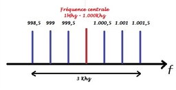 Commençons par le filtre ; celui-ci est de type passe-bande étroit à 3 Khz. Il ne va laisser "passer" qu'une bande de fréquences large de 3.000hz autour de sa fréquence centrale (Fp) dans notre exemple 1 Mhz.
