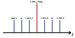 Avec l'oscillateur 2 à 1.500 hz au dessus de la fréquence du filtre on va avoir le spectre 2
